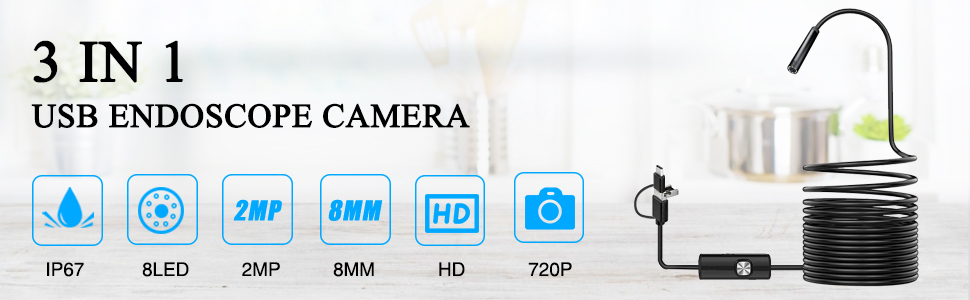 The PiAEK Endoscope is a versatile 3-in-1 USB inspection camera featuring a 2.0MP HD sensor with an 8mm lens, 8 adjustable LED lights, and a 5-meter semi-rigid waterproof cable. Compatible with Android (OTG), Windows, and Mac devices, it delivers clear visuals in hard-to-reach, dark, and wet environments, making it perfect for plumbing, HVAC, and maintenance professionals.