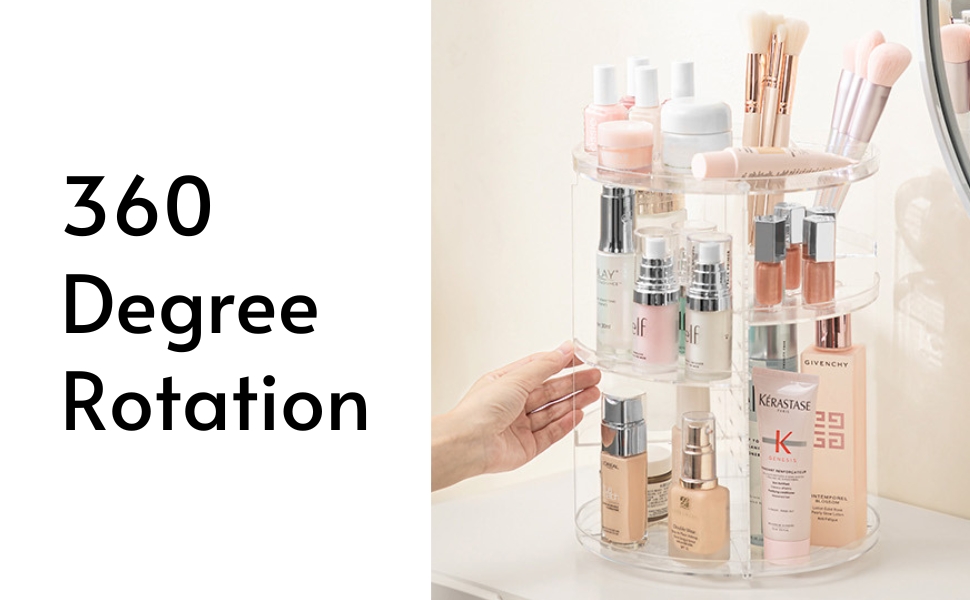 The Ameitech Makeup Organizer features a 360-degree rotating design with 8 adjustable layers, offering a large capacity to store over 60 brushes and 30 skincare products. Its clear, polished finish provides a sleek, modern look while saving space and keeping your cosmetics and jewelry perfectly organized.