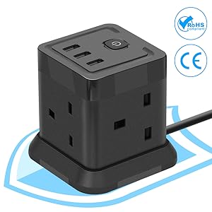 Extension Lead Cube 3m With Usb Slots Beva 4 Way | Desertcart Brazil