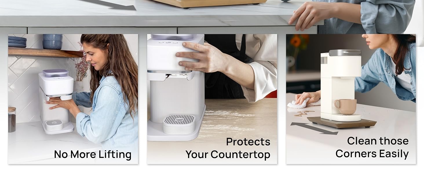 The Ibyx Elegant Sliding Tray is a durable, eco-friendly bamboo platform with quiet rubber wheels, designed in Canada to effortlessly slide heavy kitchen appliances like coffee makers and air fryers from under cabinets. Available in multiple sizes, it protects countertops from scratches while enhancing kitchen organization and accessibility.