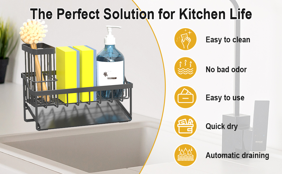 The Estefanlo Sink Caddy is a compact, lightweight kitchen organizer designed to keep your sink essentials neat and accessible. Featuring a durable powder-coated plastic build and a dedicated sponge holder, it combines functionality with a minimalist black finish that fits effortlessly into any modern kitchen setup.