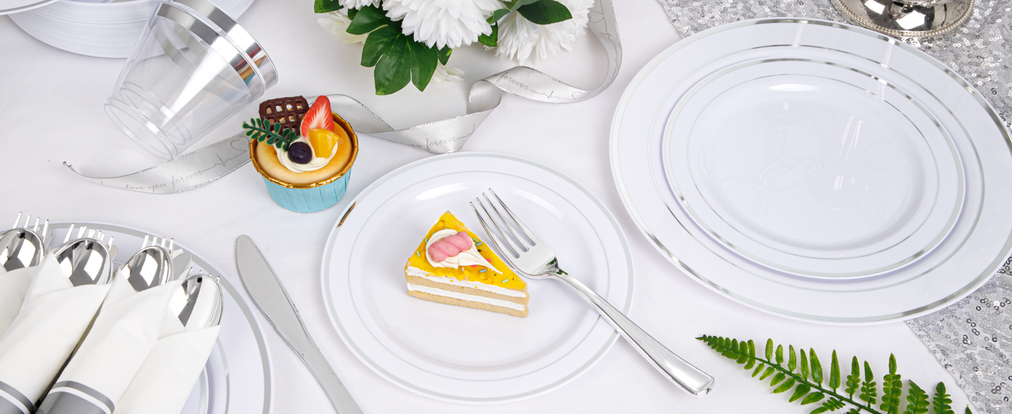Wellife 700 Pcs Silver Plastic Plates For 100 Guests Christmas | Desertcart Brazil