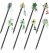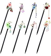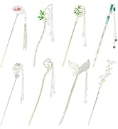 The inSowni 8-piece set features silver-tone decorative hair sticks ranging from 16.5 to 19.5 cm, crafted from high-quality metal and embellished with pearls, rhinestones, and gems. Inspired by traditional Chinese motifs like lotus flowers and clouds, these durable hairpins are designed to securely hold medium to thick hair in elegant buns or updos, perfect for both everyday wear and special occasions.