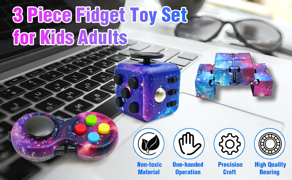 3 Piece Fidget Toy Set Galaxy Fidget Cube Pad Infinity | Desertcart Brazil