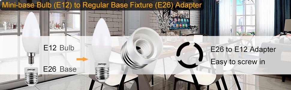 I've only tried this with 4W LED (40W equivalent), 5W LED (60W equivalent) and actual 40W filament E12 bulbs (varying from 2700K soft white to 5000k daylight.) They indicate they support a max of 200W, but I haven't tested any higher wattage E12 bulbs in them. The E12 bulbs twist in easily and securely, and the E26 base works as expected in every fixture I've tried. I show an image of a 4-way light fixture (in which one bulb is a 60W Equivalent soft white E26 halogen, one bulb is a 60W equivalent soft white E26 LED, another bulb is a 5W LED (60W equivalent) 5000k daylight E12 inserted into E26 adapter, and finally a 4W LED (40W equivalent) 2700k soft white E12 inserted into E26 adapter). So basically; 2 actual E26 bulbs along with 2 converted E12 bulbs all in the same fixture working harmoniously. Good value, simple but effective adapters.