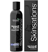 Skinsations Unscented Massage Oil is an 8oz fragrance-free blend of Sweet Almond, Jojoba, Coconut (MCT), and Grapeseed oils designed for sensitive skin. This lightweight, non-greasy formula glides smoothly without staining or clogging pores, making it perfect for professional massage therapy or daily moisturizing. Made in the USA with a convenient push-top cap, it serves as an ideal carrier oil for essential oils or a standalone hydrating body oil.